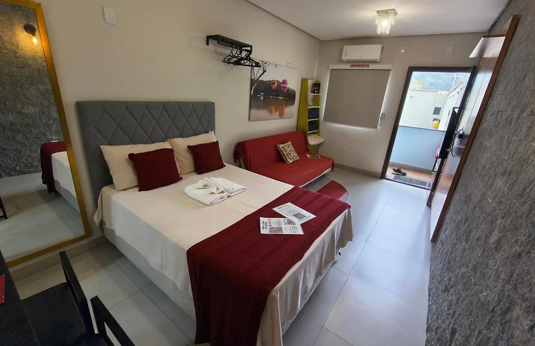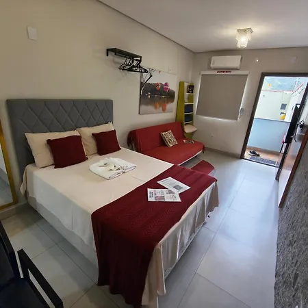 O Apartamento Novo Com Ar Condicionado E Garagem de 27 m² tem cozinha totalmente equipada, e confortos como controle de temperatura.